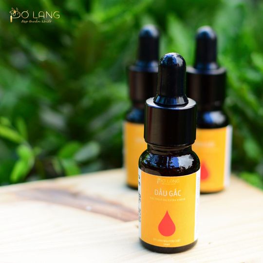 * Cách dùng: Thoa trực tiếp lên da, cho một vài giọt dầu gấc vào lòng bàn tay, xoa đều 2 tay rồi áp lên da, masage nhẹ nhàng vài phút cho dưỡng chất thấm vào da. Để dầu gấc thấm lên da khoảng 45 – 60 phút, sau đó rửa sạch mặt bằng nước ấm, có thể rửa lại bằng sữa rửa mặt hoặc sữa tươi hoặc bột rửa mặt cho thật sạch và lau khô mặt. Có thể để dầu gấc thấm qua đêm nếu da không bị kích ứng.