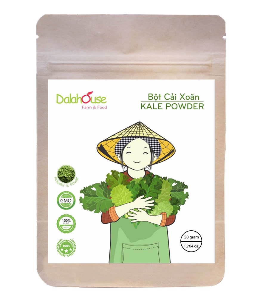 Bột cải xoăn kale DalaHouse là bột rau củ đầu tiên được kiểm soát từ khâu trồng trọt đến khâu chế biến từ những nguyên liệu hữu cơ tươi ngon không hóa chất tại nông trại của DalaHouse, Lâm Đồng. Sản phẩm được sản xuất bằng công nghệ sấy Nhật Bản và đạt tiêu chuẩn VSATTP Việt Nam, FDA Hoa Kỳ.